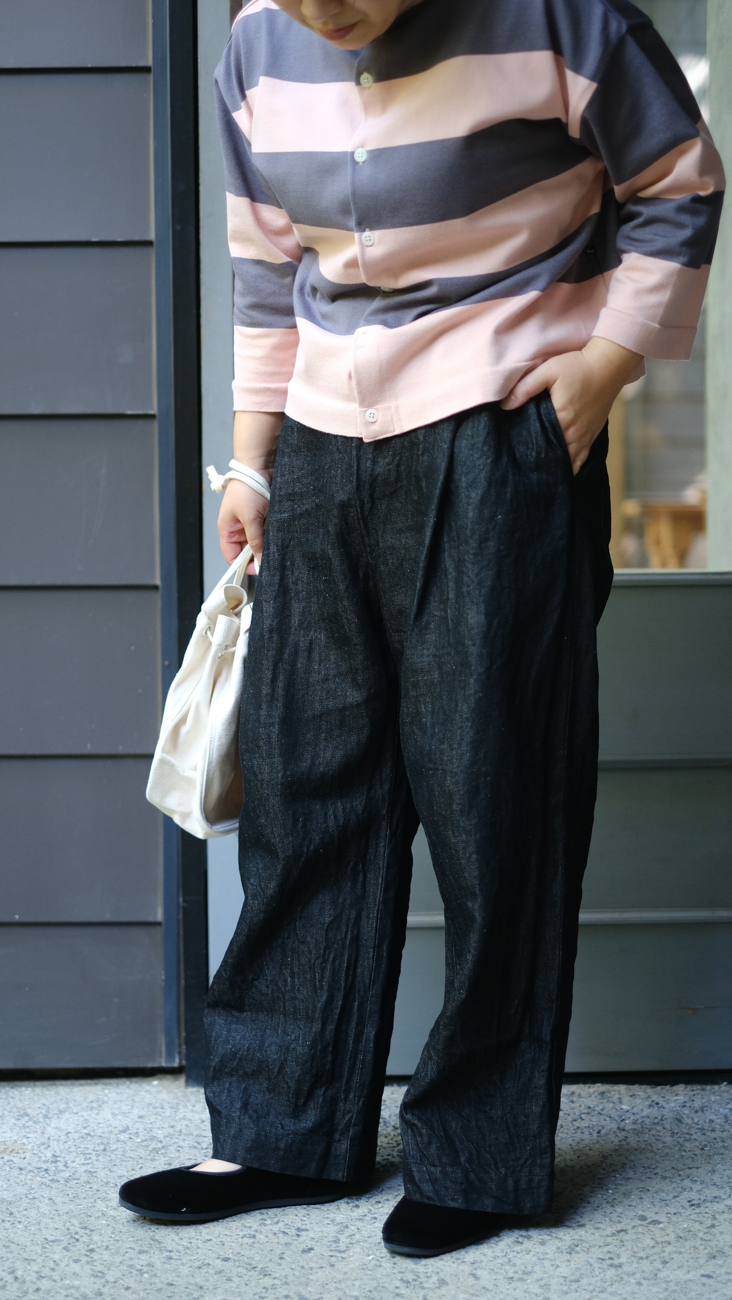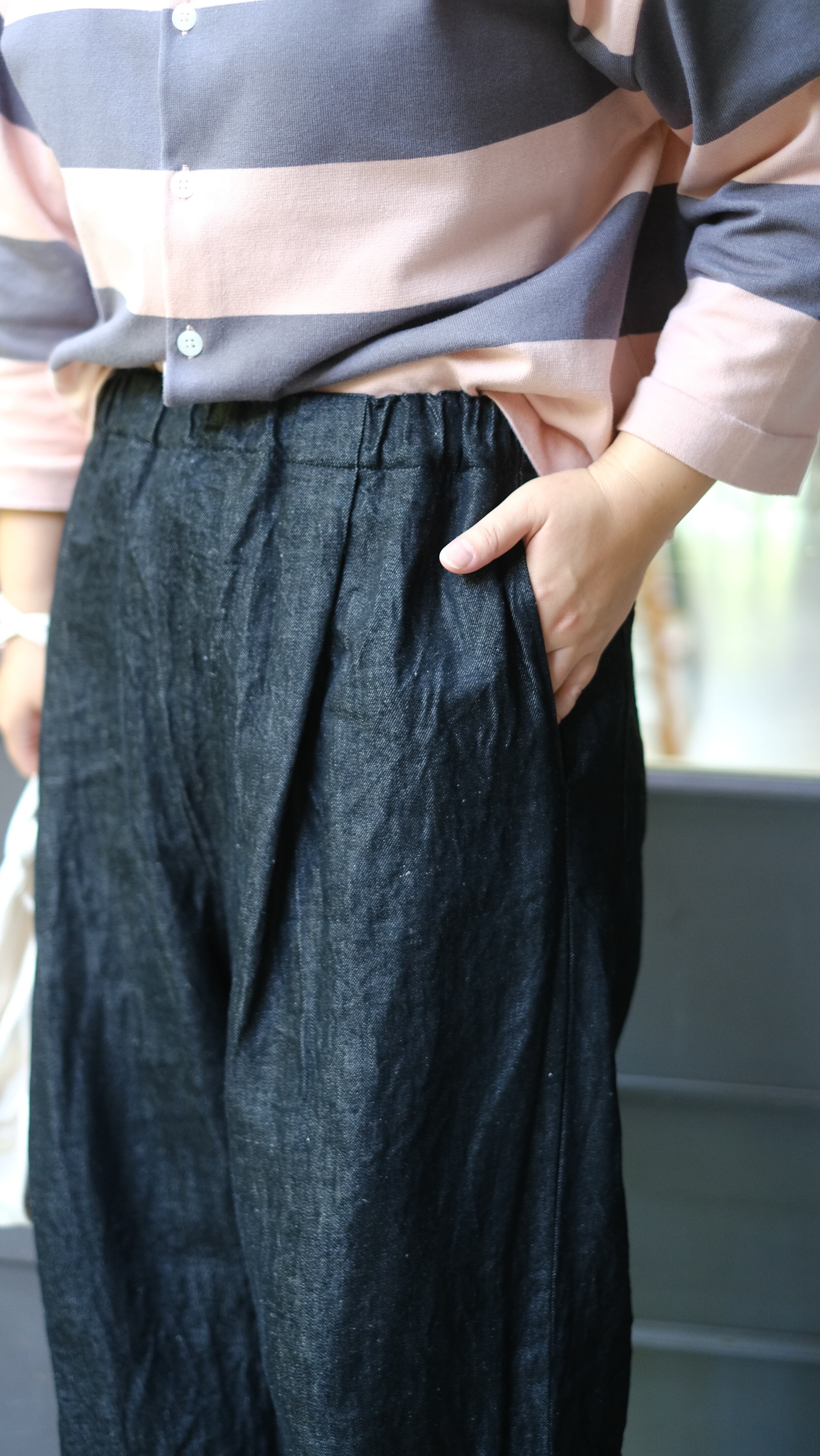 やや厚みのあるリネンデニム生地になっています。