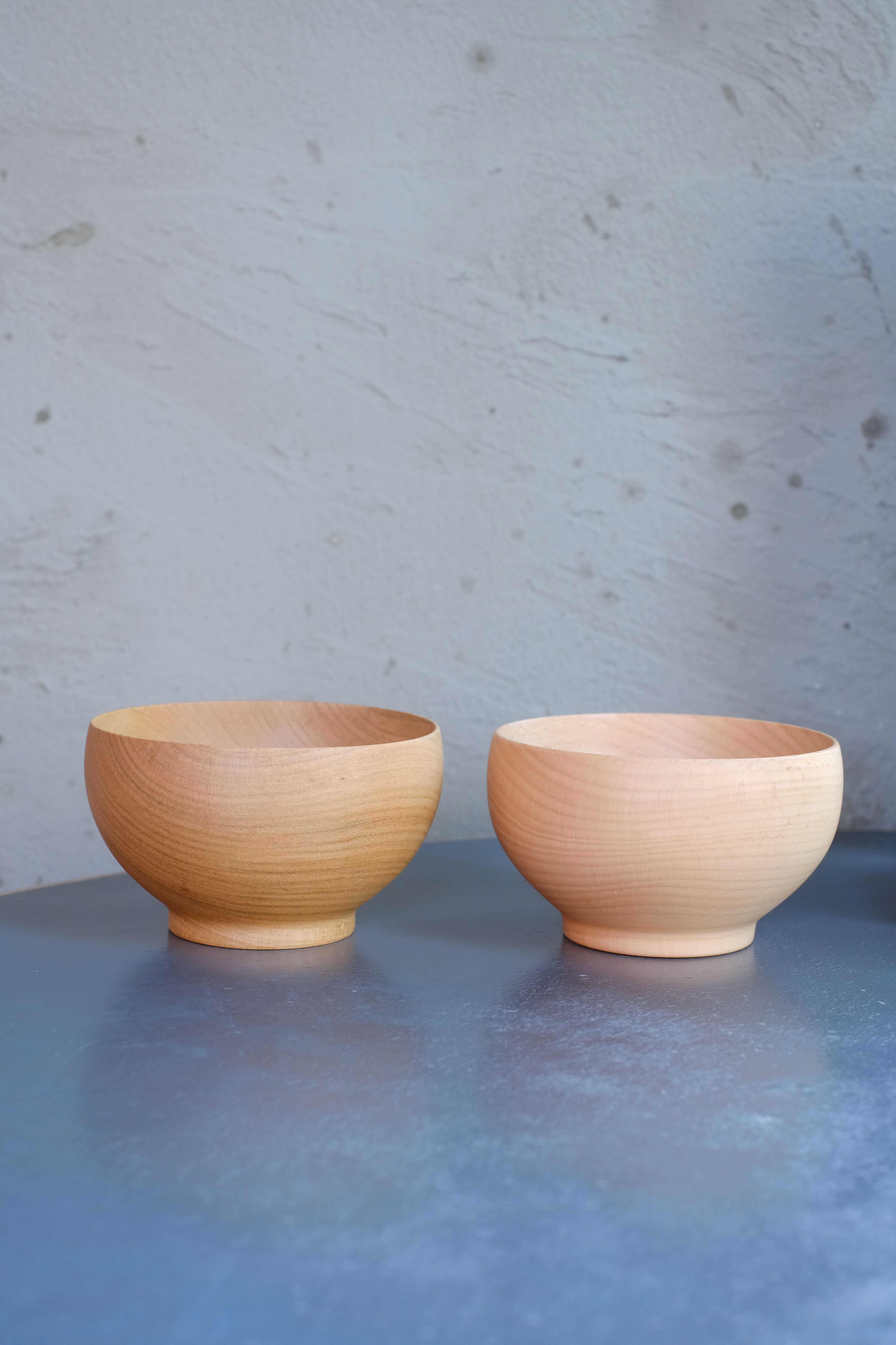 日本の銘木を丁寧にろくろで削り一つ一つ形を作り出していくめいぼく椀。