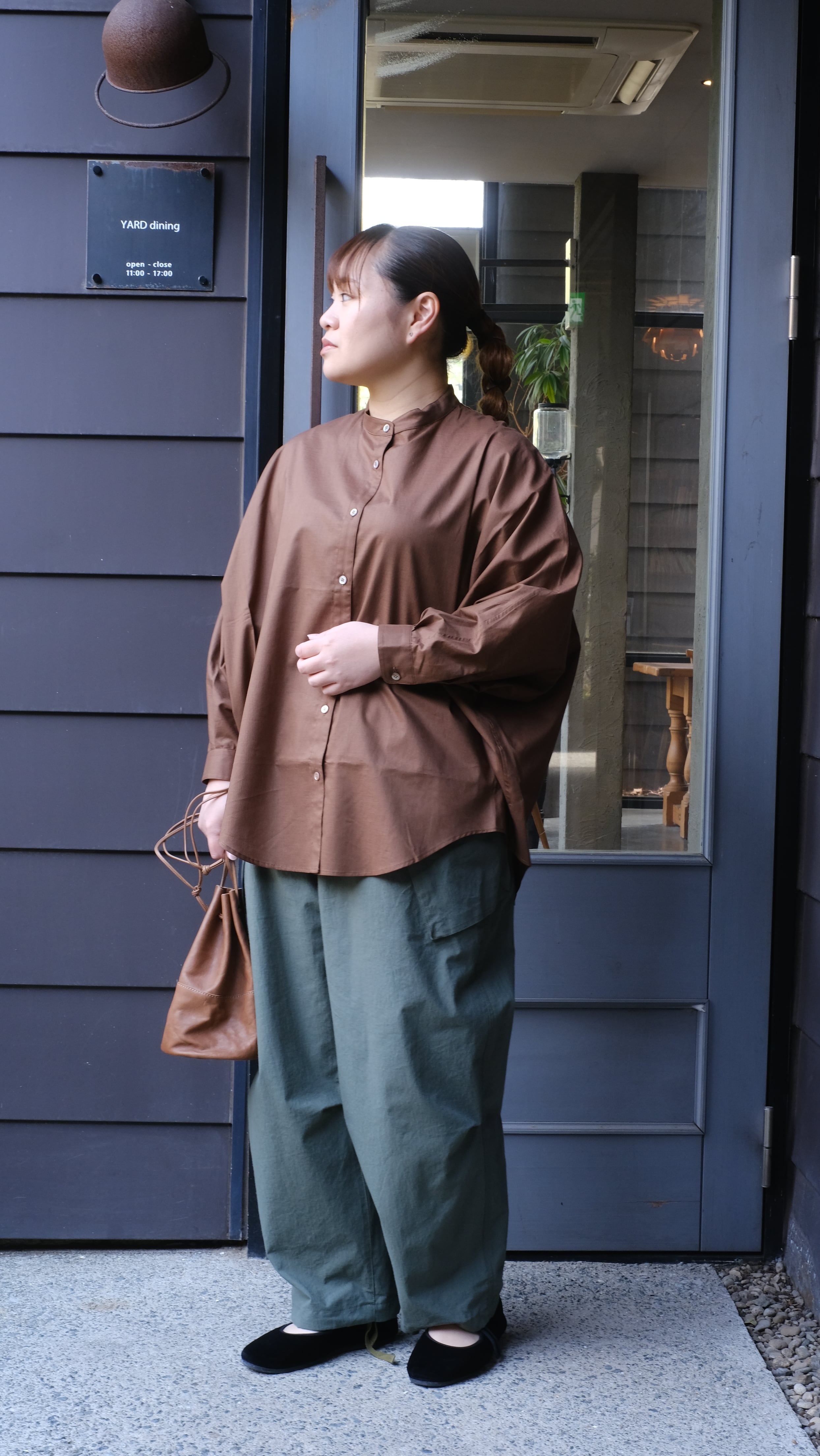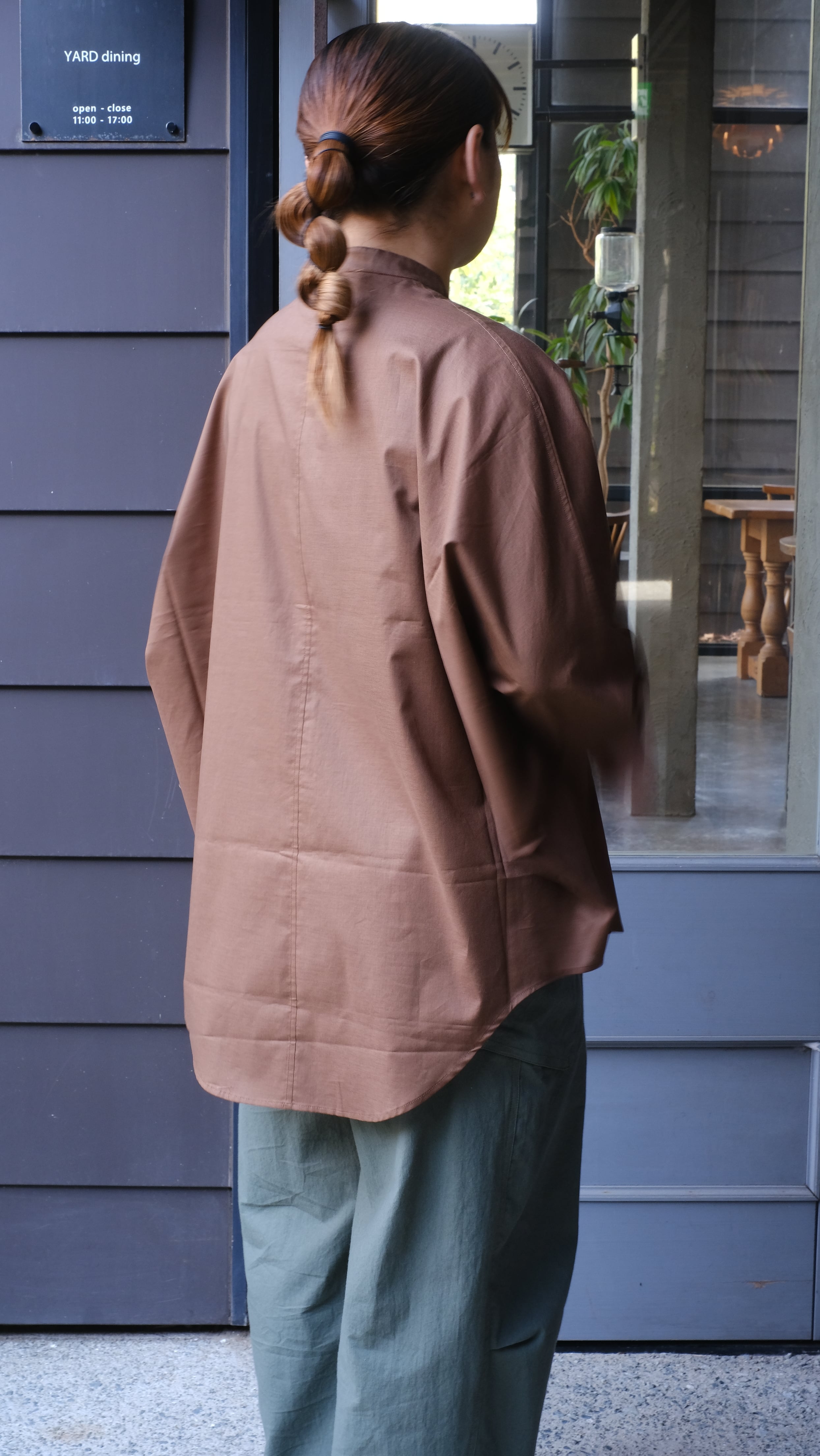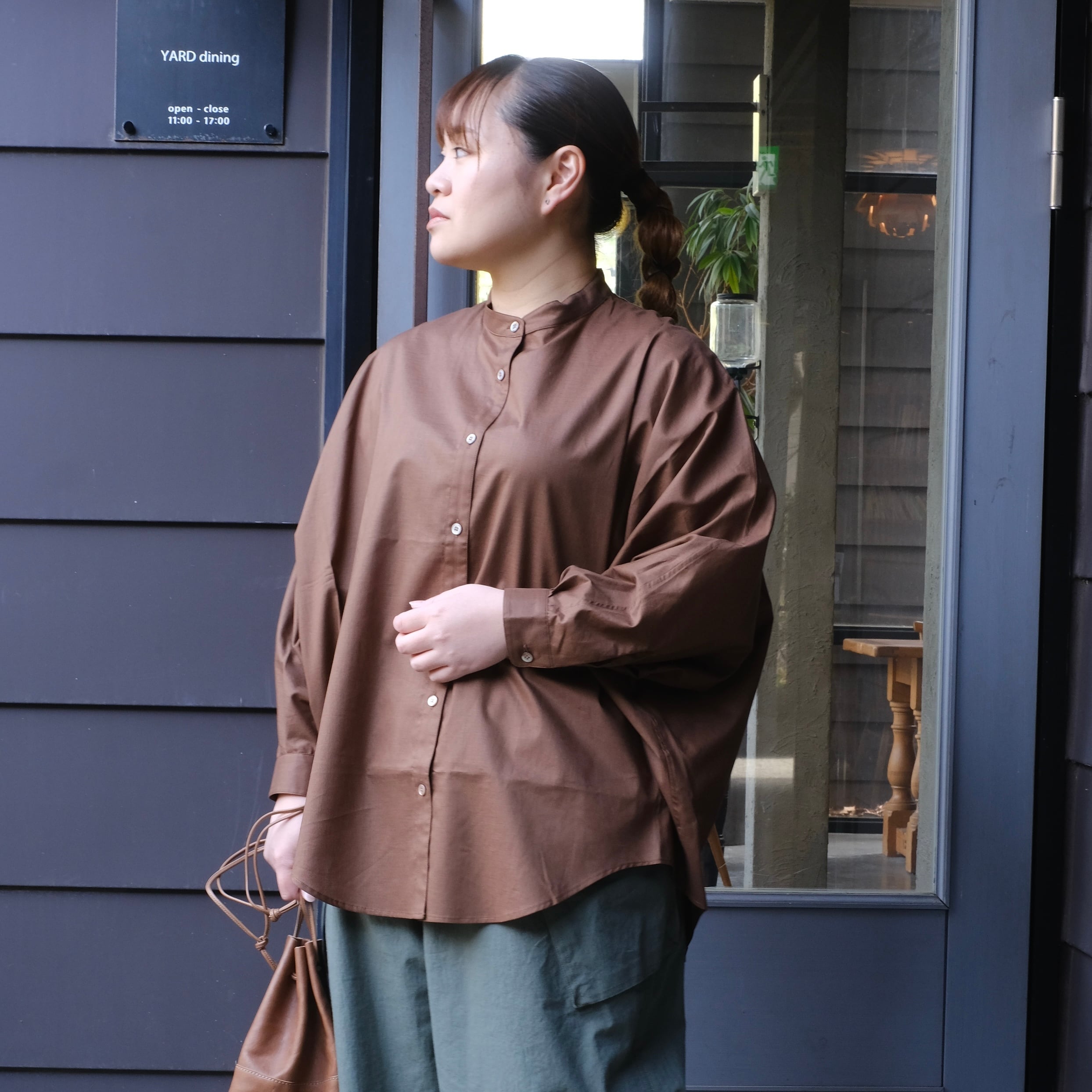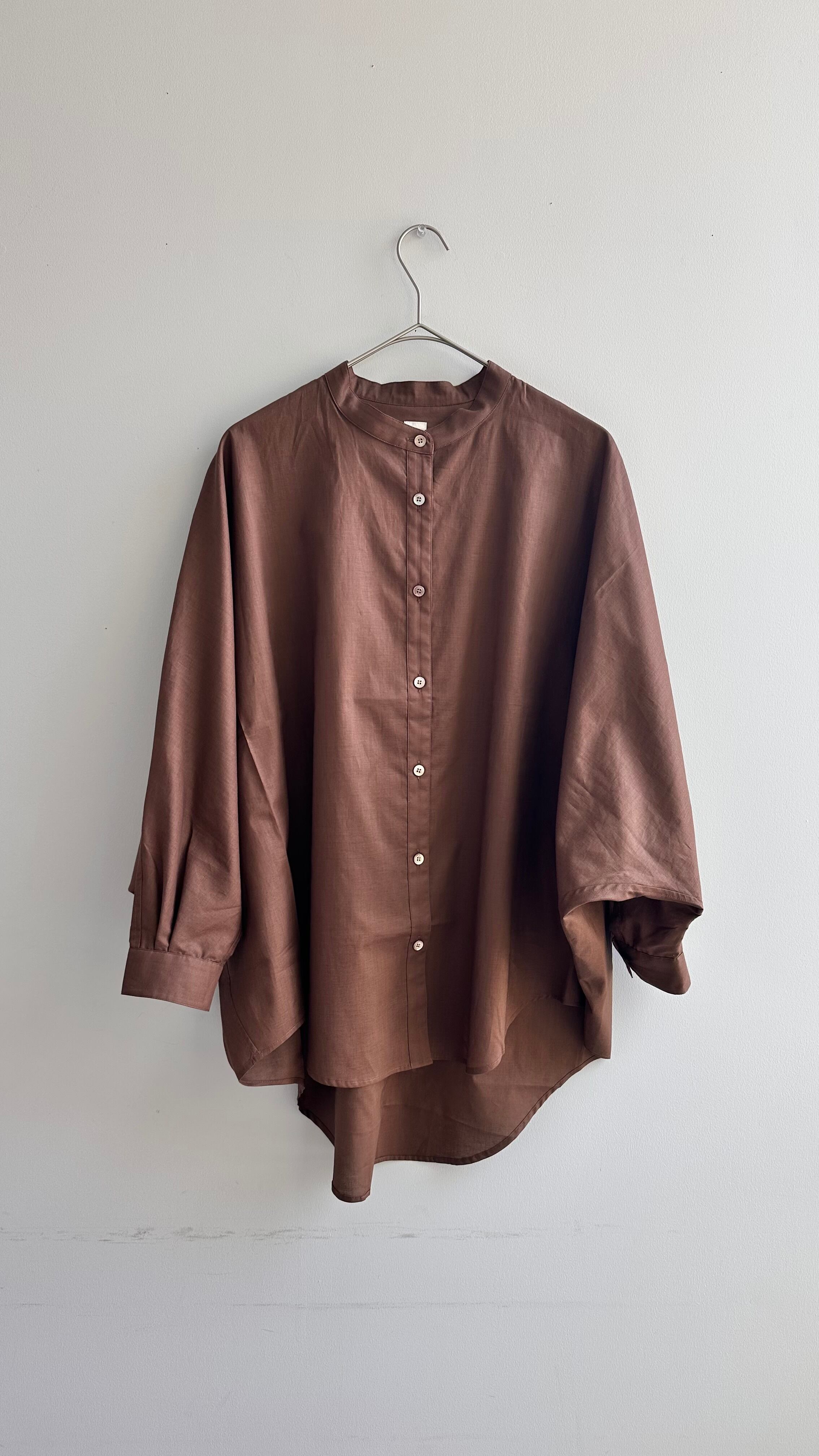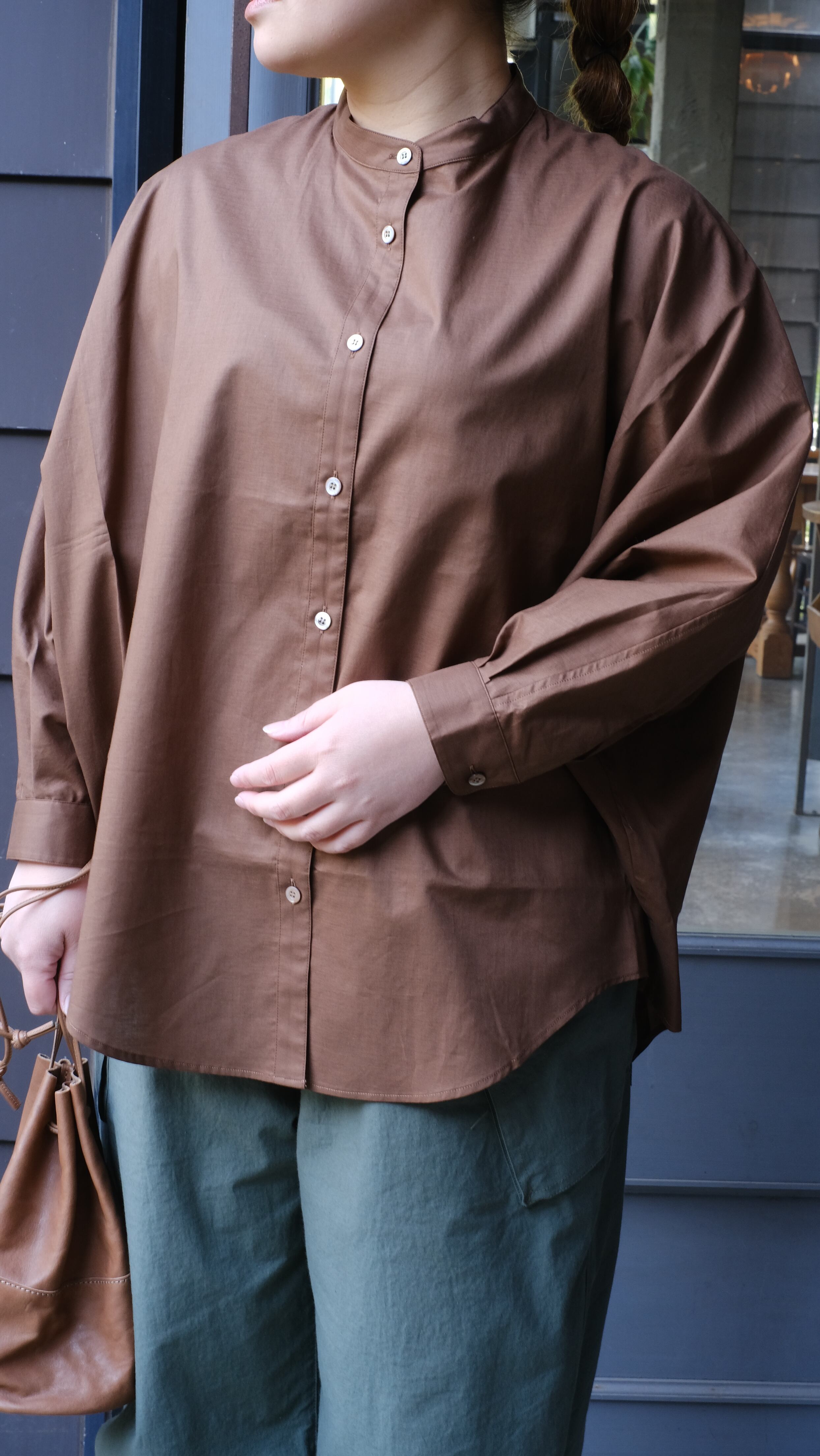 ゆったりとした身幅とドルマンスリーブで、体のラインを拾わずリラックス感のある着心地に。